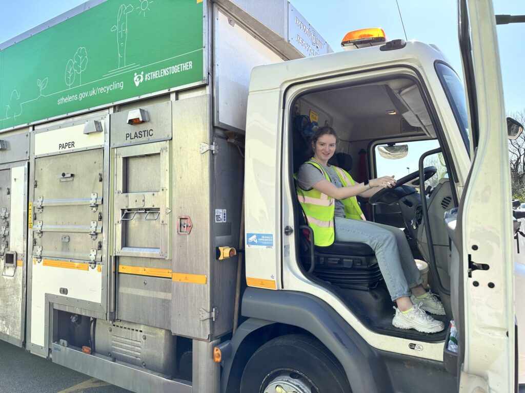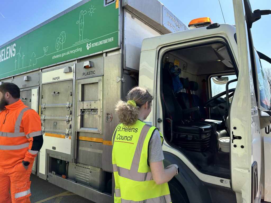 Our learners were very eager to collaborate with other local schools and organisations in the area. We have had support from St Helens Council and their Parks & Street Care team who generously donated litter picking bags. We also had a lovely visit from the Recycling Team who brought one of their recycling trucks into school so that the students could ask questions, recycle class waste ย – they even got to sit in the driverโs cabin and honk the horn!